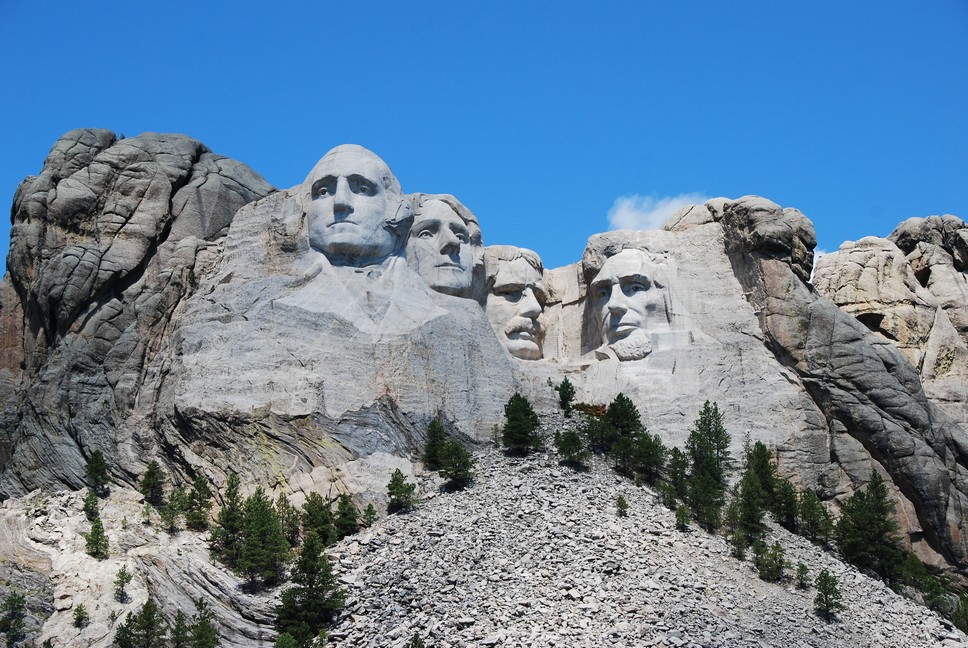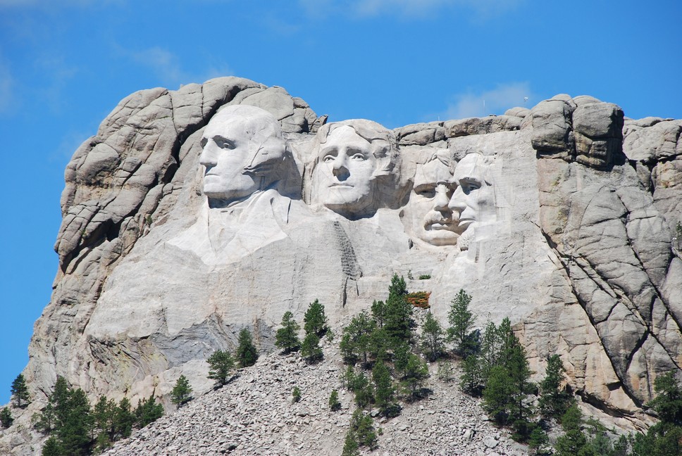 The Mount Rushmore National Memorial is a national memorial centered on a colossal sculpture carved into the granite face of Mount Rushmore in the Black Hills near Keystone, South Dakota, United States. Sculptor Gutzon Borglum designed the sculpture, called Shrine of Democracy, and oversaw the project’s execution from 1927 to 1941 with the help of his son, Lincoln Borglum. The sculpture features the 18 m heads of four United States presidents: George Washington, Thomas Jefferson, Theodore Roosevelt, and Abraham Lincoln, chosen to represent the nation’s birth, growth, development and preservation, respectively.